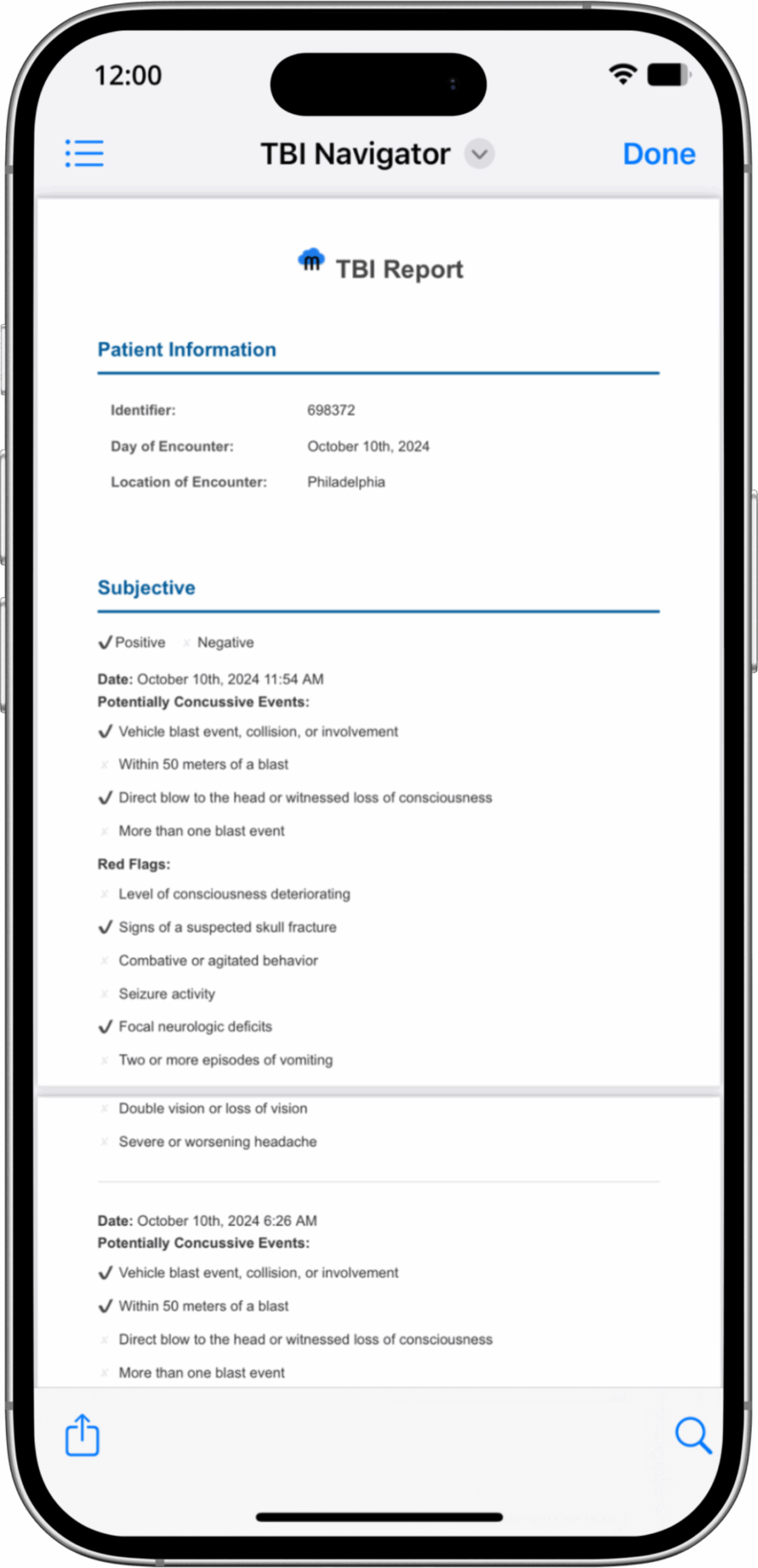 This application is designed to assist in the assessment of TBI symptoms but does not replace. comprehensive medical evaluation.