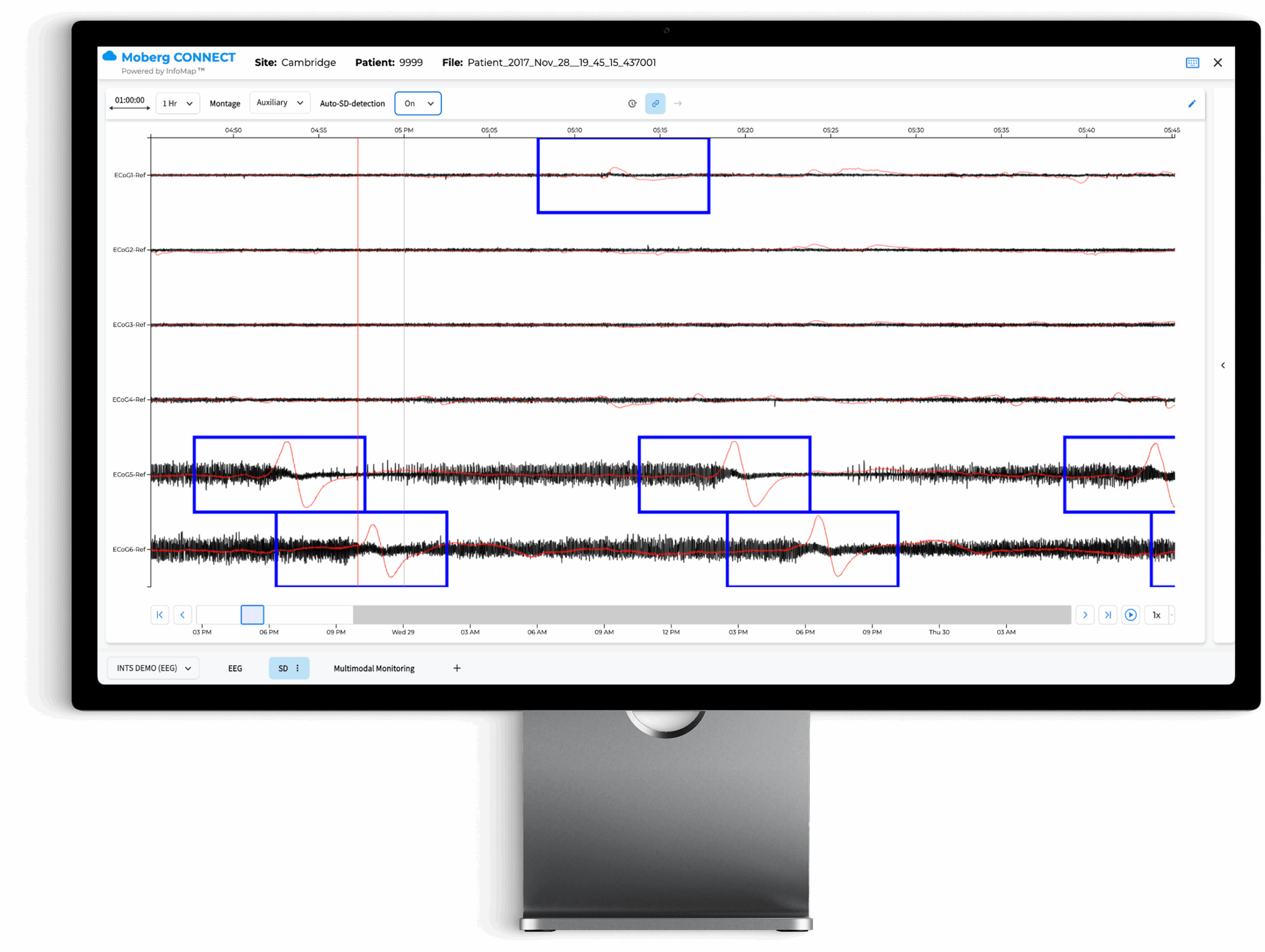 Identify changes sooner with real-time and retrospective visualization of EEG and physiological trends.