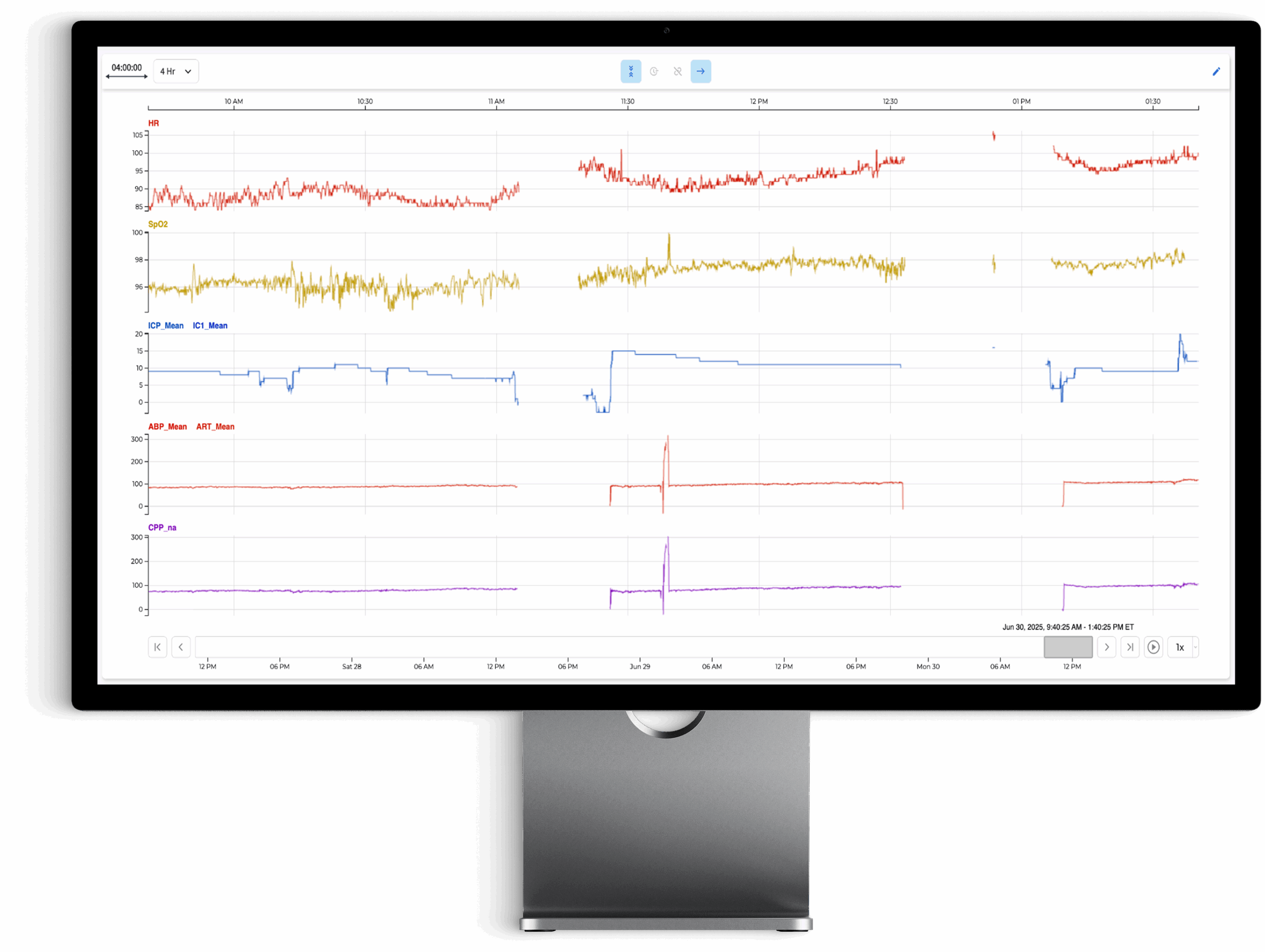 Aggregate brain and body data in near real-time at the bedside.