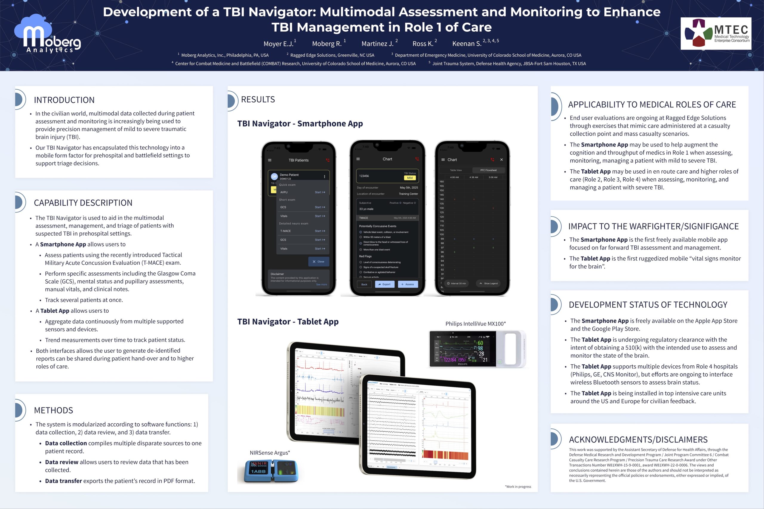 Development of a TBI Navigator: Multimodal Assessment and Monitoring to Enhance TBI Management in Role 1 of Care.