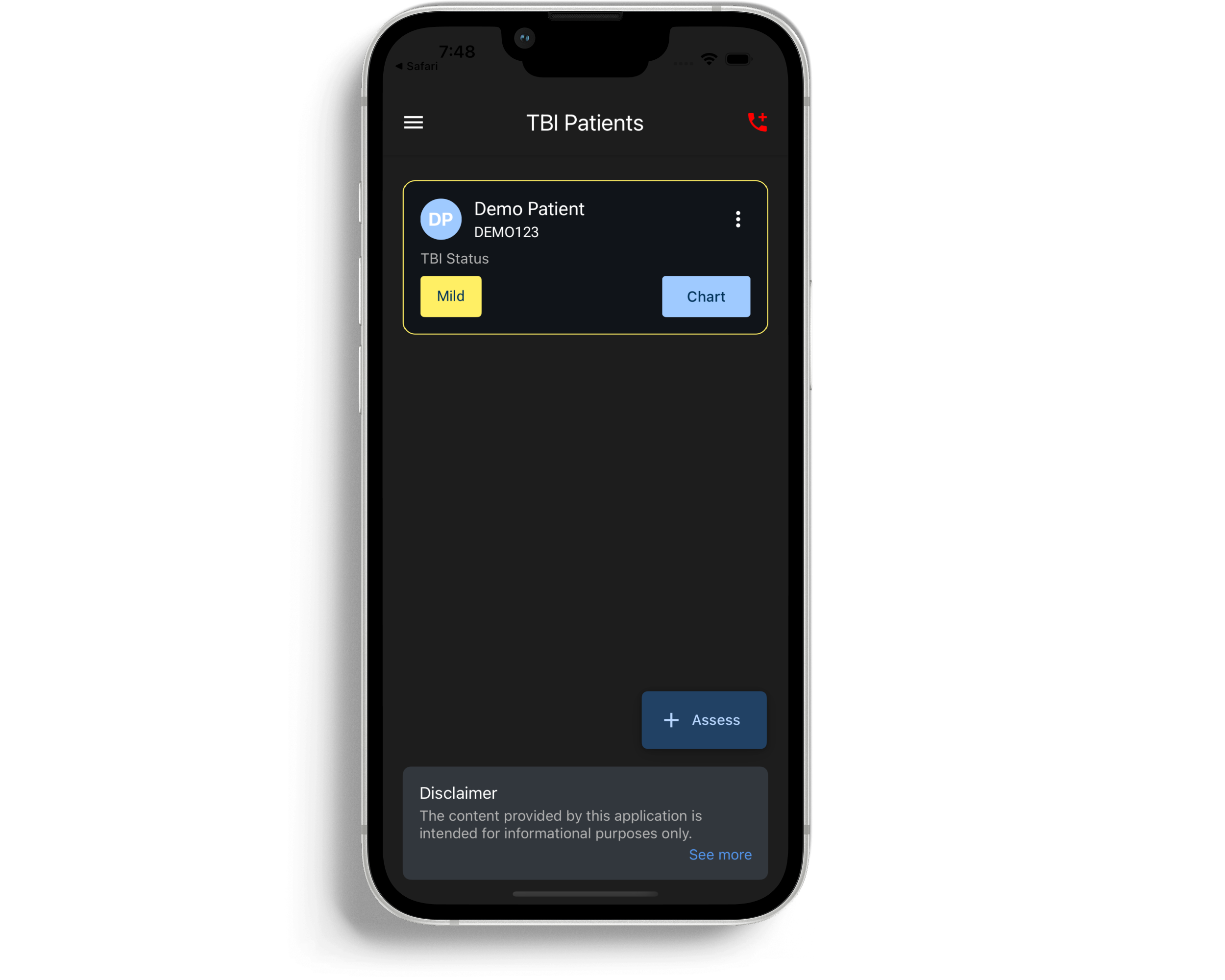 This application is designed to assist in the assessment of TBI symptoms but does not replace. comprehensive medical evaluation.